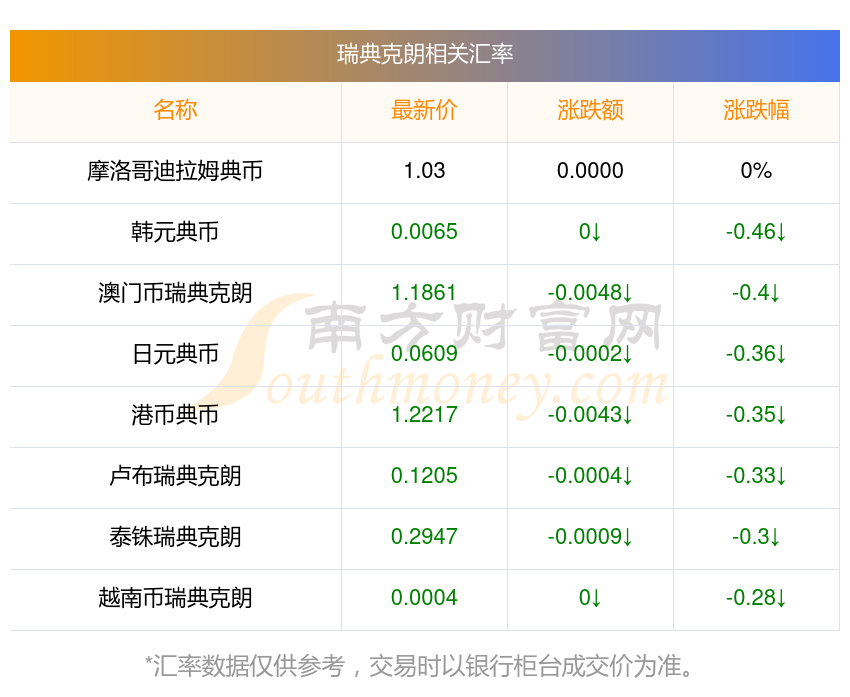 2025年11月26日瑞典克朗相關(guān)匯率查詢