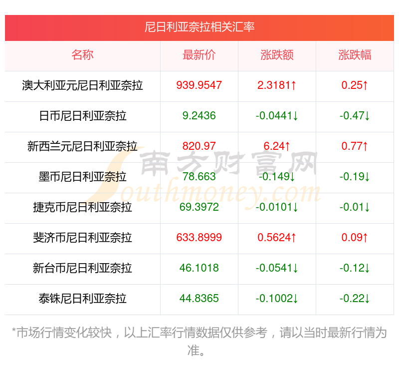 南方財富網(wǎng)為您提供尼日利亞奈拉對韓元匯率最新價格詳情。