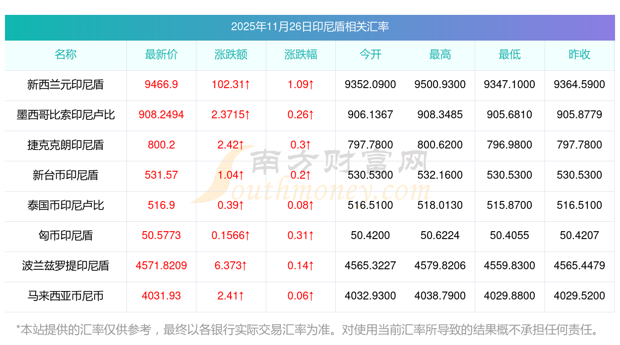 2025年11月26日印尼盾相關(guān)匯率查詢