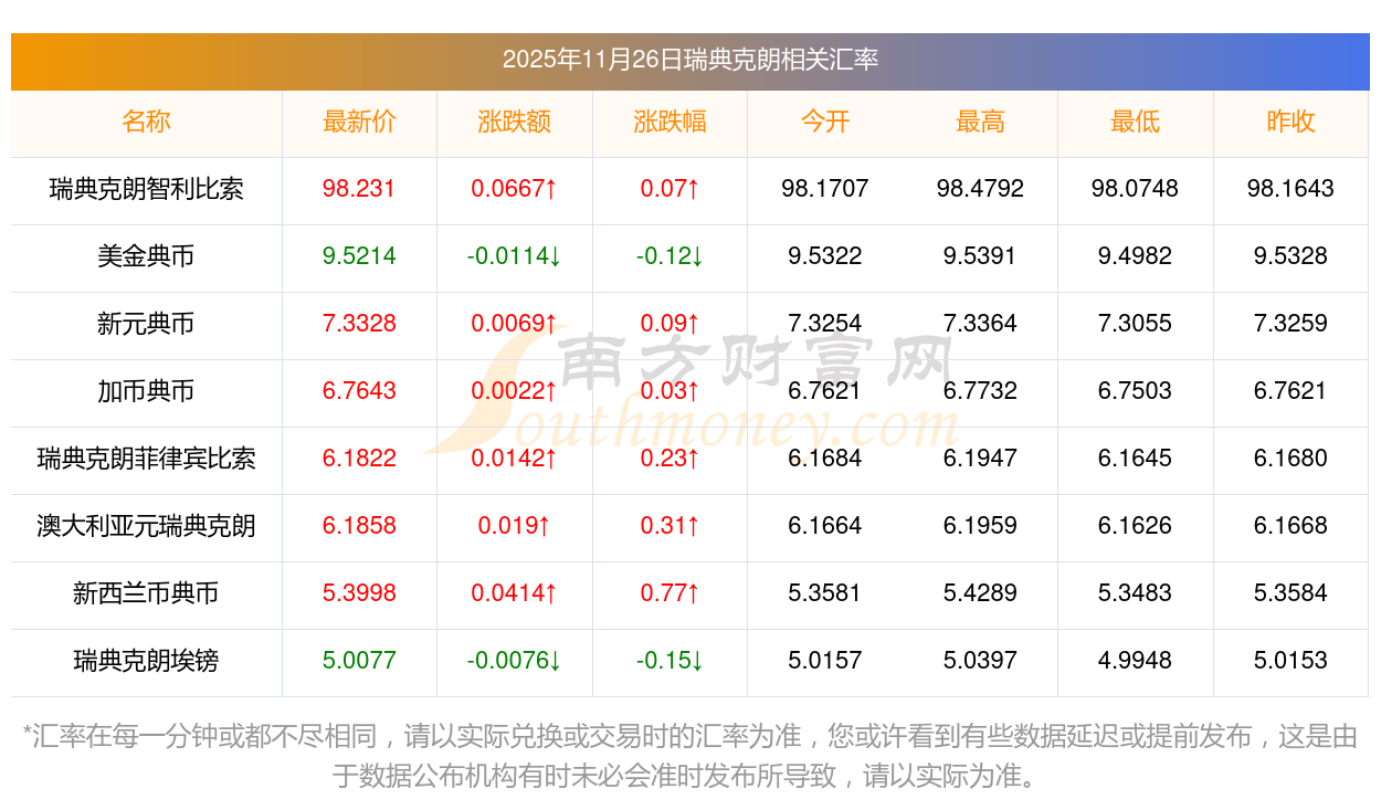 2025年11月26日瑞典克朗相關(guān)匯率查詢
