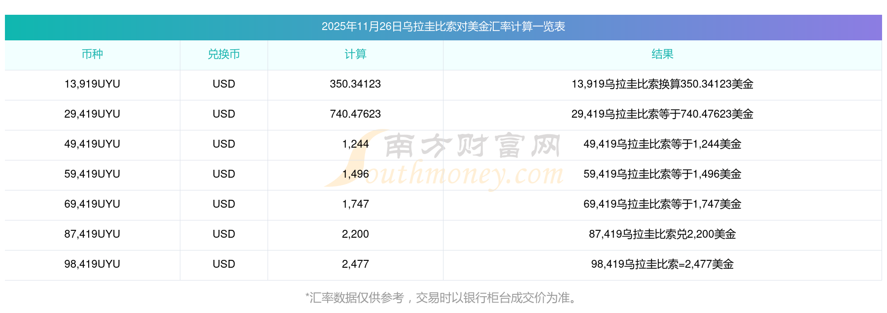 烏拉圭比索與美金兌換匯率_今天實時匯率查詢 2025年11月26日