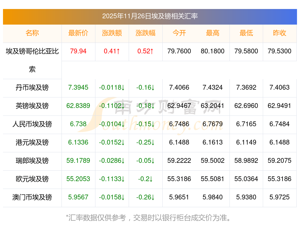 2025年11月26日埃及鎊相關(guān)匯率查詢