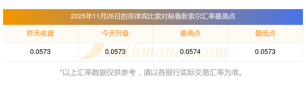 今天菲律賓比索與秘魯新索爾匯率查詢2025年11月26日 ?