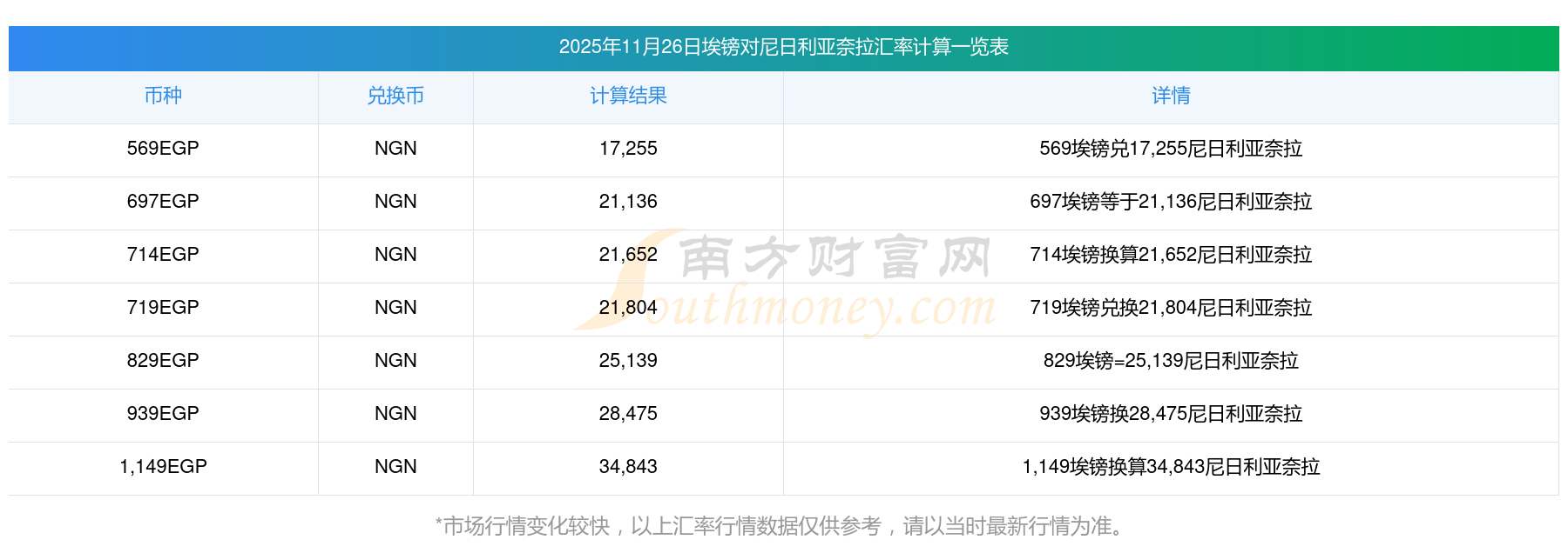 今日埃鎊匯價:2025年11月26日35埃鎊兌尼日利亞奈拉匯價一覽表
