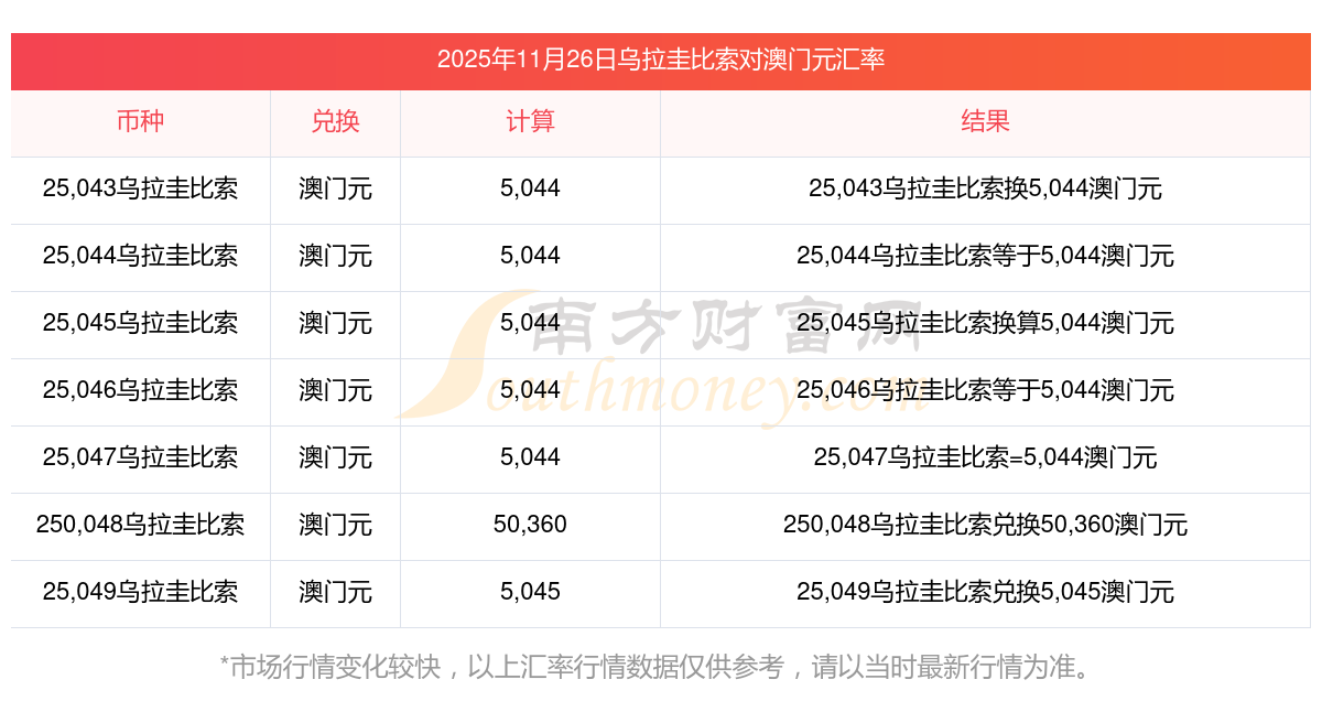 南方財(cái)富網(wǎng)為您提供烏拉圭比索對(duì)澳門(mén)元匯率最新價(jià)格詳情。