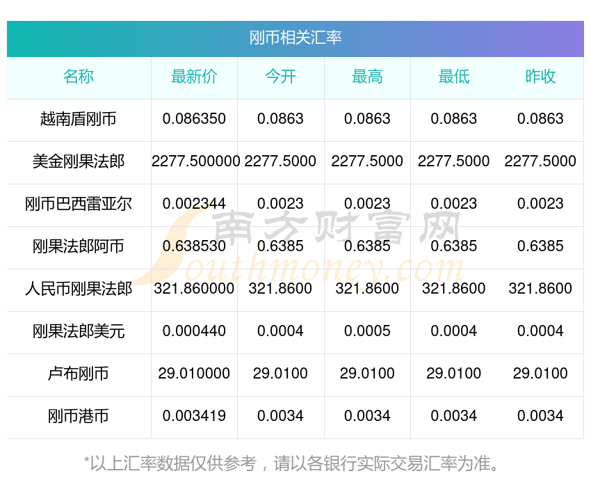 南方財(cái)富網(wǎng)為您提供剛幣對(duì)港幣匯率最新價(jià)格詳情。