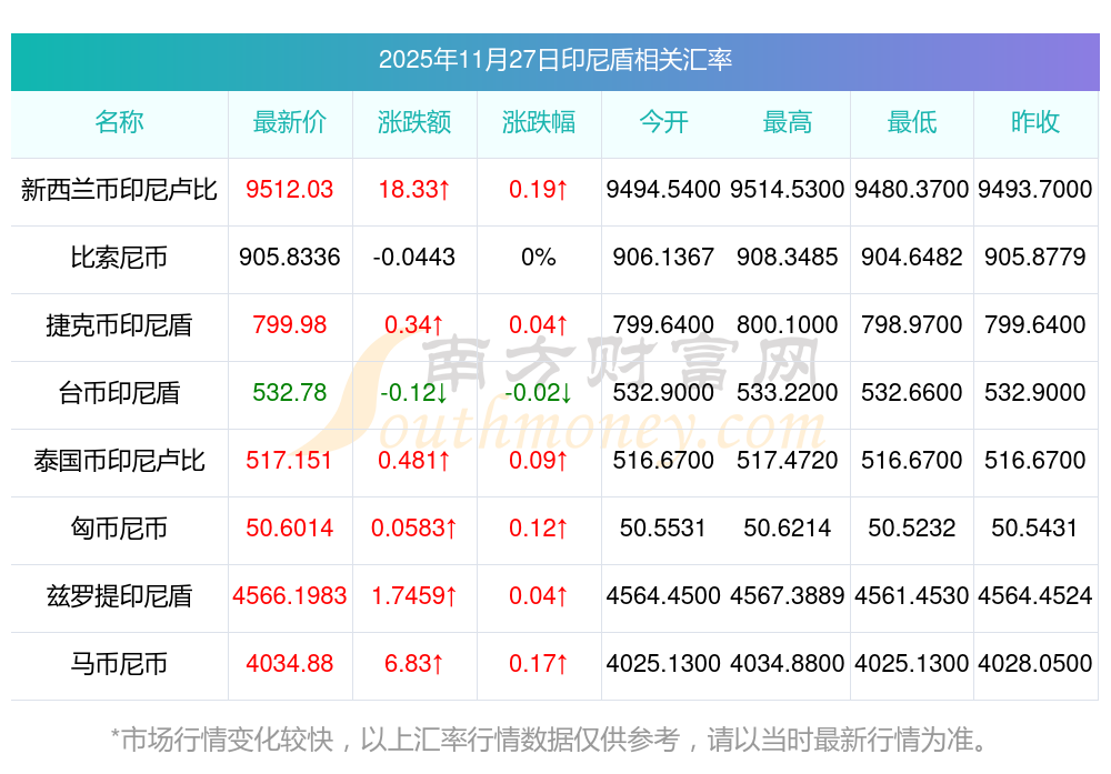 南方財富網為您提供印尼盾對摩洛哥迪拉姆匯率最新價格詳情。