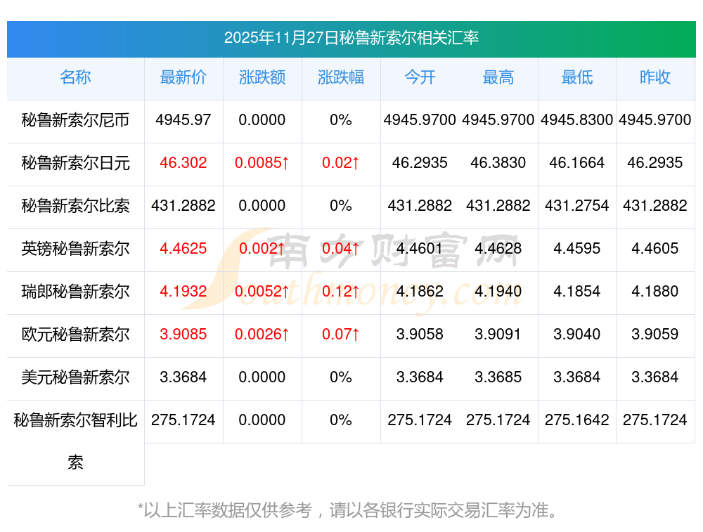 最新126秘魯新索爾轉(zhuǎn)換為尼幣匯率多少?具體計(jì)算方法2025/11/27