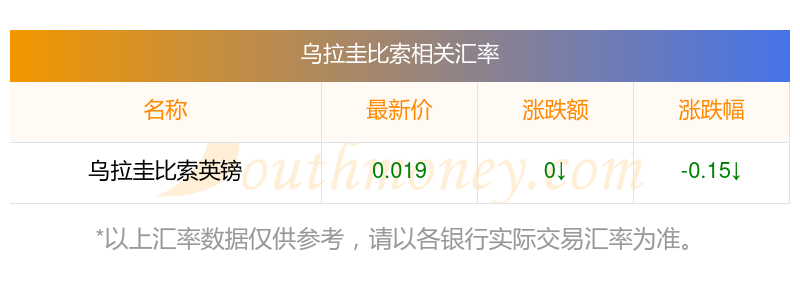 南方財(cái)富網(wǎng)為您提供烏拉圭比索對(duì)英鎊匯率最新價(jià)格詳情。