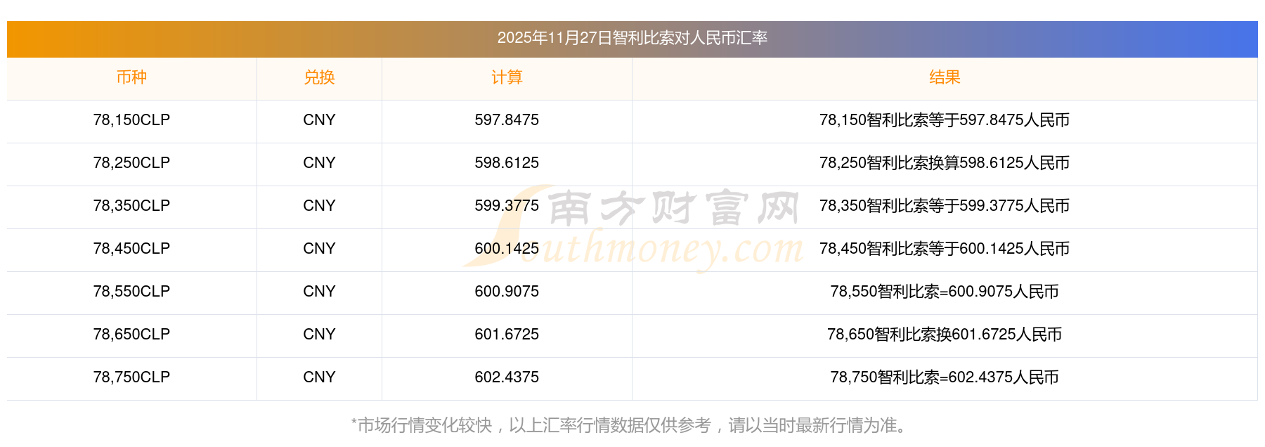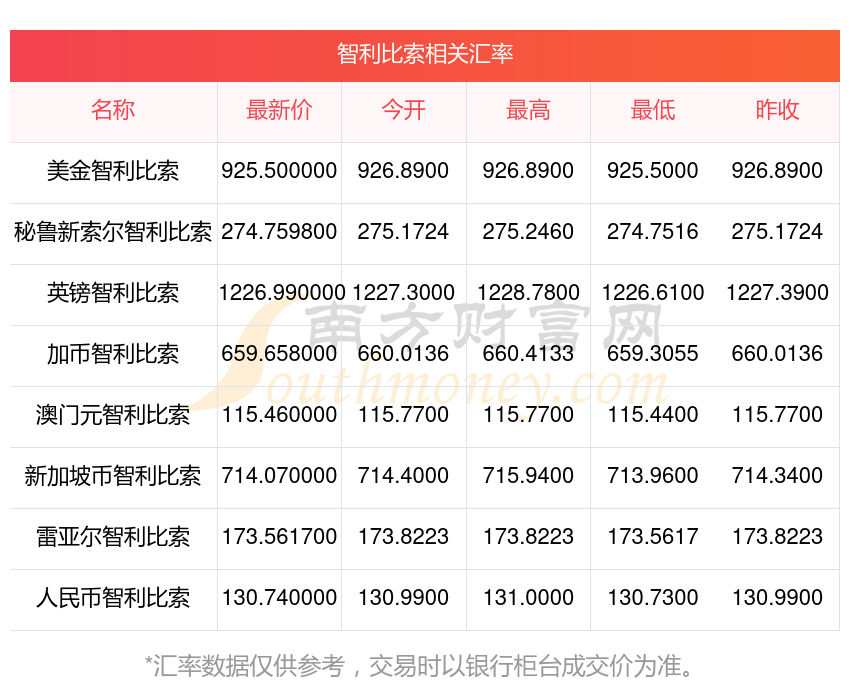 南方財(cái)富網(wǎng)為您提供智利比索對人民幣匯率最新價(jià)格詳情。