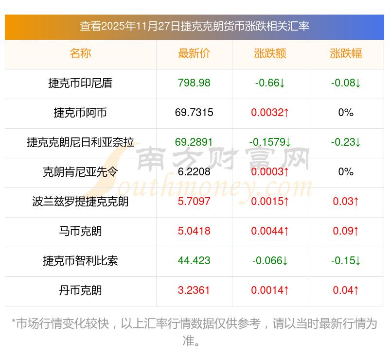 南方財富網為您提供捷克克朗對菲幣匯率最新價格詳情。