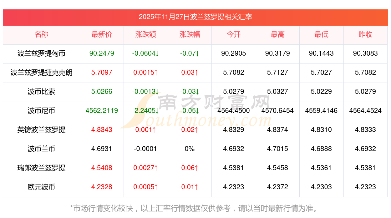 今天波蘭茲羅提匯率如何,波蘭茲羅提對瑞士法郎匯率價多少?2025/11/27