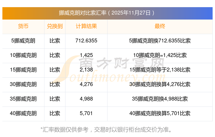 挪威克朗兌比索匯率一覽?今日匯率查詢2025/11/27