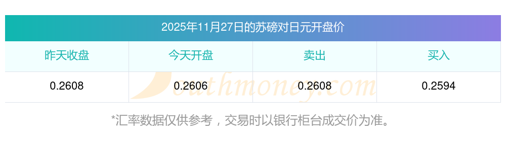 蘇丹鎊今日匯率行情:10蘇丹鎊等于多少日元?2025-11-27