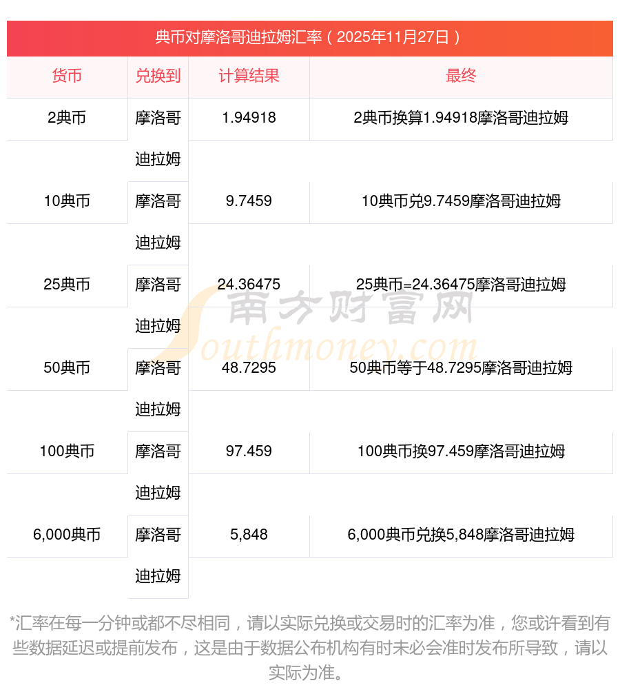 匯率查詢 | 典幣對摩洛哥迪拉姆匯率今日是多少? 2025/11/27