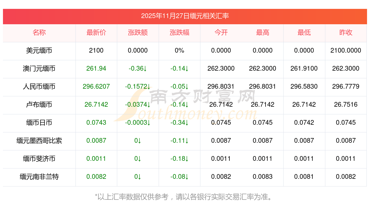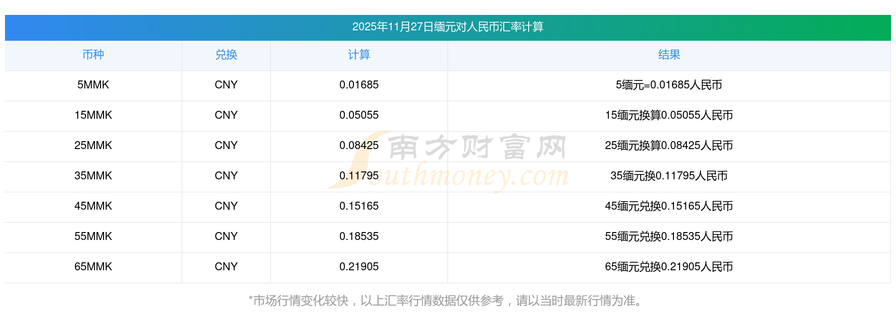 南方財富網(wǎng)為您提供緬元對人民幣匯率最新價格詳情。