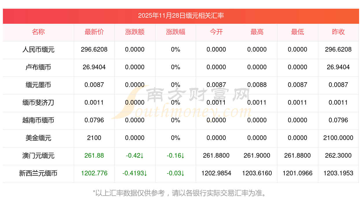 每日匯率查詢—緬元對新元匯率調(diào)整多少2025/11/28