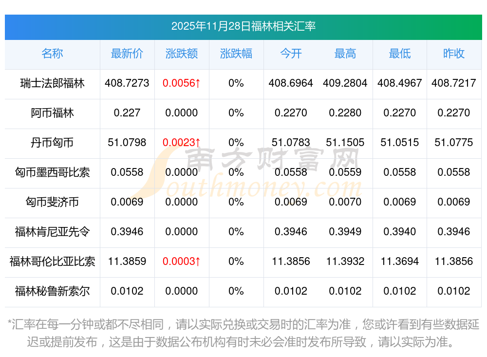 根據(jù)2025年11月28日匯率計算,福林兌換秘魯新索爾匯率最新價0.010230,今開價0.0102,昨收價0.0102,最高價0.0102,最低價0.0102。