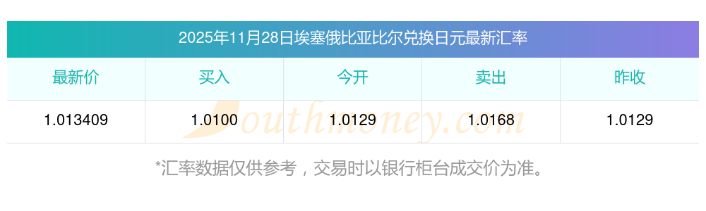 南方財富網為您提供埃塞俄比亞比爾對日元匯率最新價格詳情。