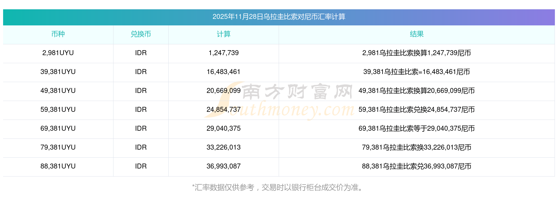 今日27烏拉圭比索兌換尼幣購(gòu)匯行情 烏拉圭比索匯率報(bào)價(jià)查詢(xún)2025/11/28