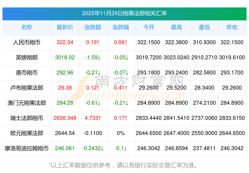 2025年11月29日剛果法郎相關(guān)匯率查詢