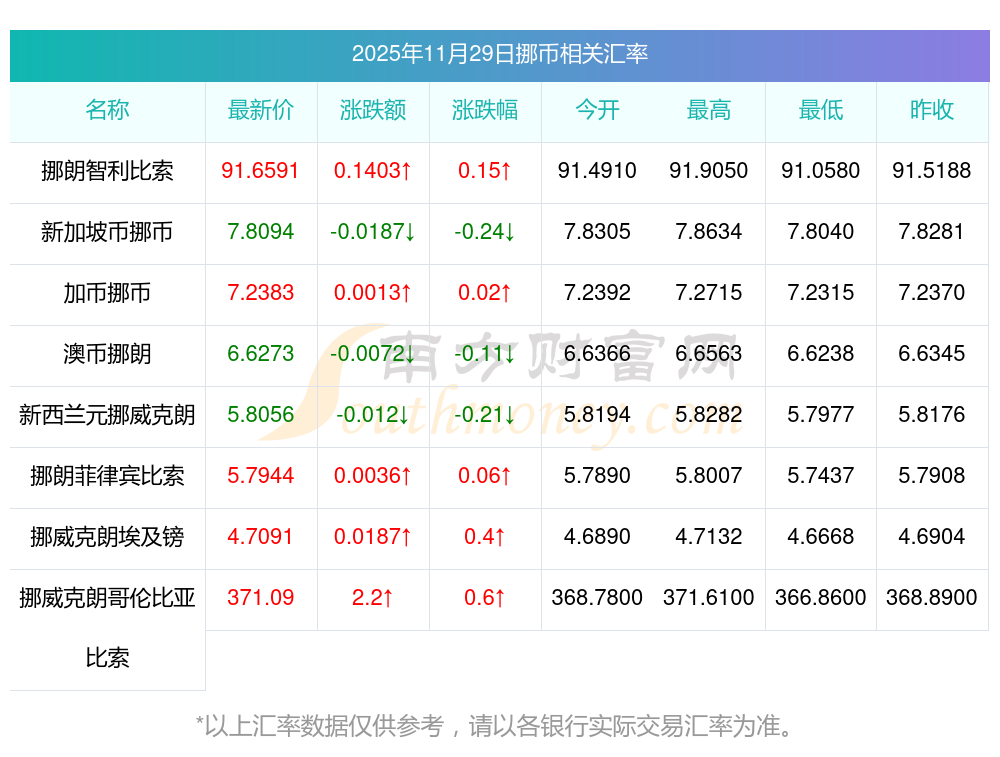 根據(jù)2025年11月29日匯率計(jì)算,NOK兌換BRL匯率最新價(jià)0.526600,今開價(jià)0.5274,昨收價(jià)0.5276,最高價(jià)0.5287,最低價(jià)0.5244。