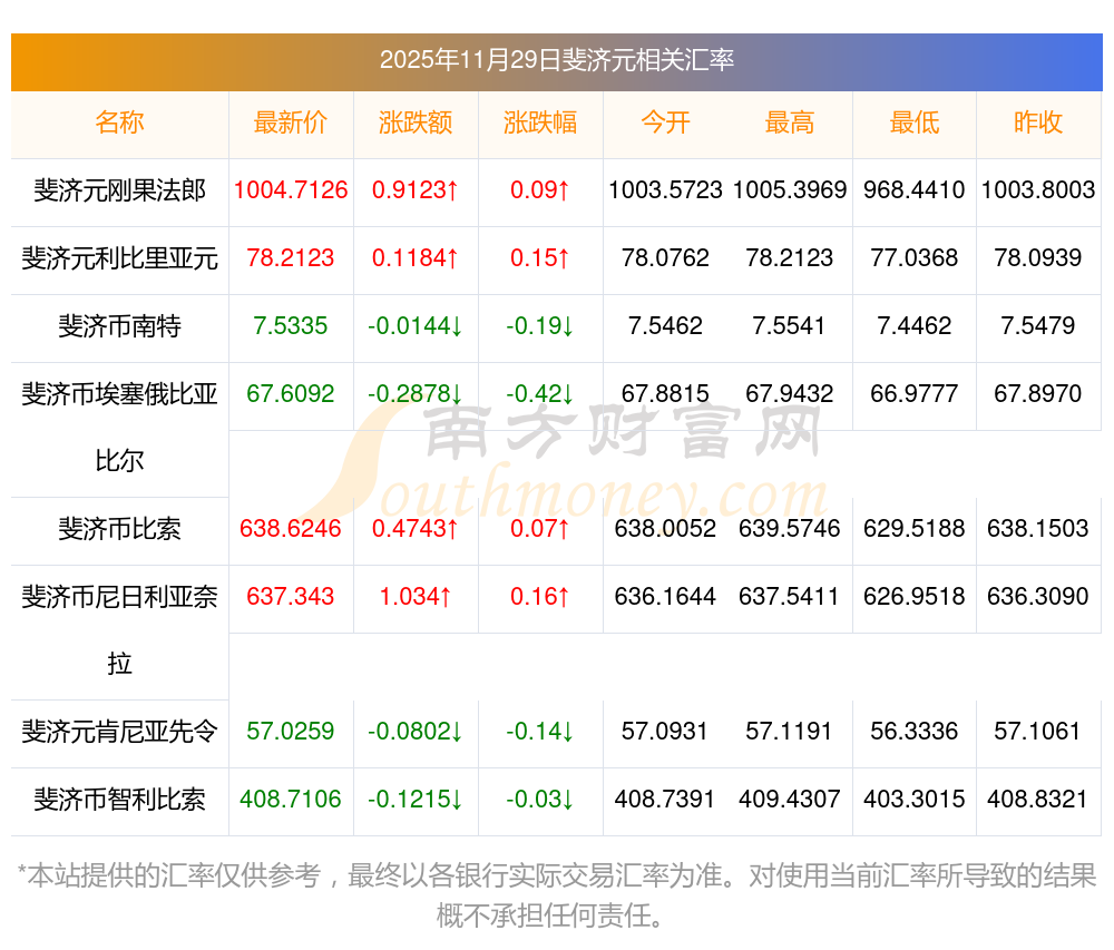 根據(jù)2025年11月29日匯率計(jì)算,F(xiàn)JD兌換CDF匯率最新價(jià)1004.712600:今開(kāi)價(jià)1003.5723,昨收價(jià)1003.8003,最高價(jià)1005.3969,最低價(jià)968.4410。