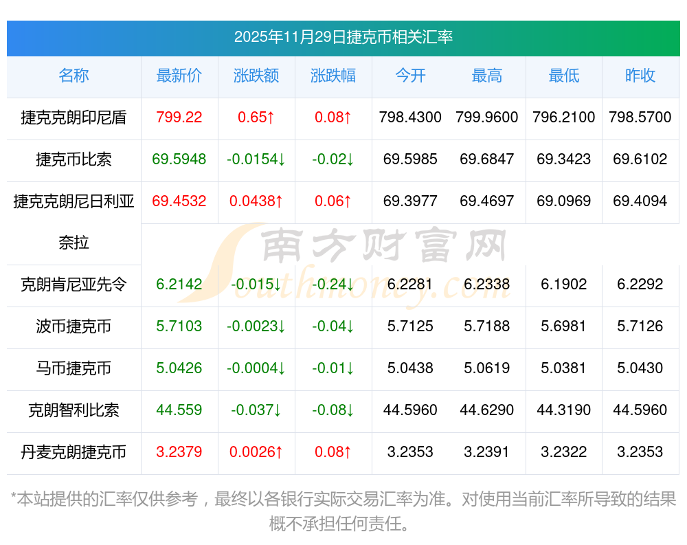 2025年11月29日捷克幣相關(guān)匯率查詢