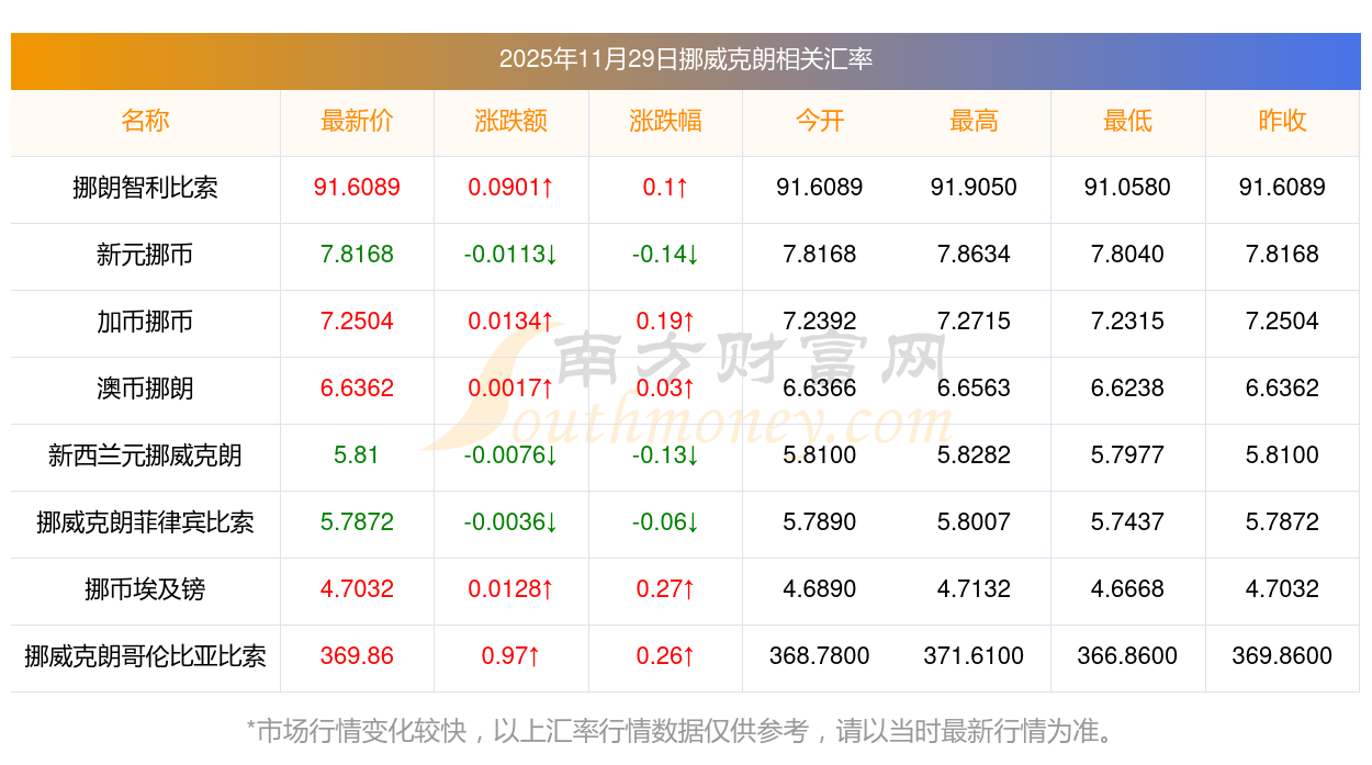 2025年11月29日挪威克朗相關(guān)匯率查詢