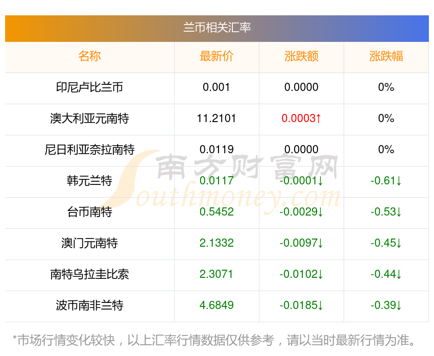 南方財富網(wǎng)為您提供蘭幣對阿根廷比索匯率最新價格詳情。