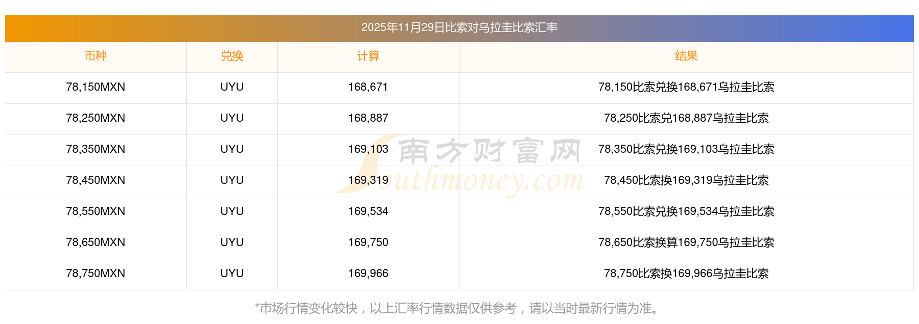 換匯指南_比索與烏拉圭比索實時兌換匯率多少(2025/11/29)
