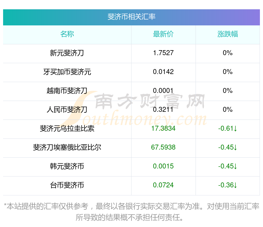 南方財富網(wǎng)為您提供斐濟幣對牙買加元匯率最新價格詳情。