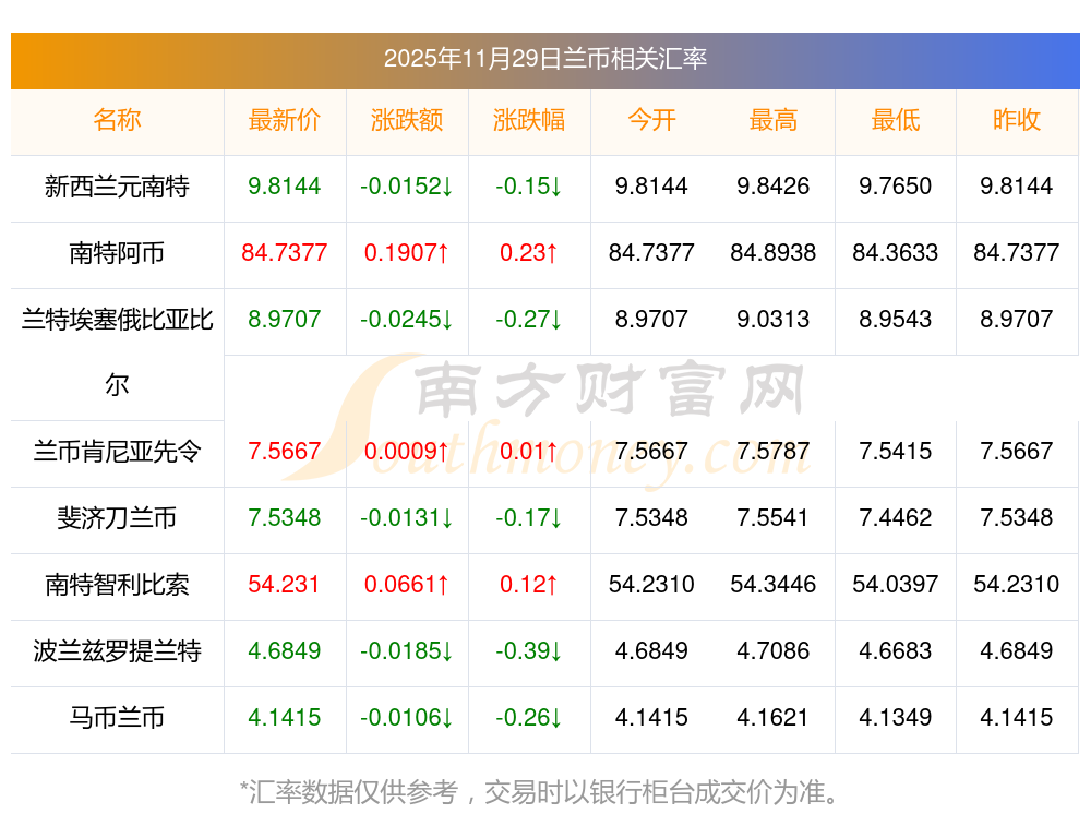 2025年11月29日蘭幣相關(guān)匯率查詢