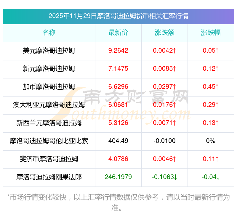 2025年11月29日摩洛哥迪拉姆相關(guān)匯率查詢