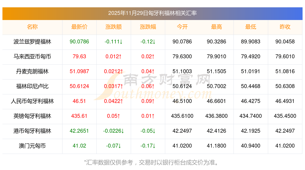 2025年11月29日匈牙利福林相關(guān)匯率查詢