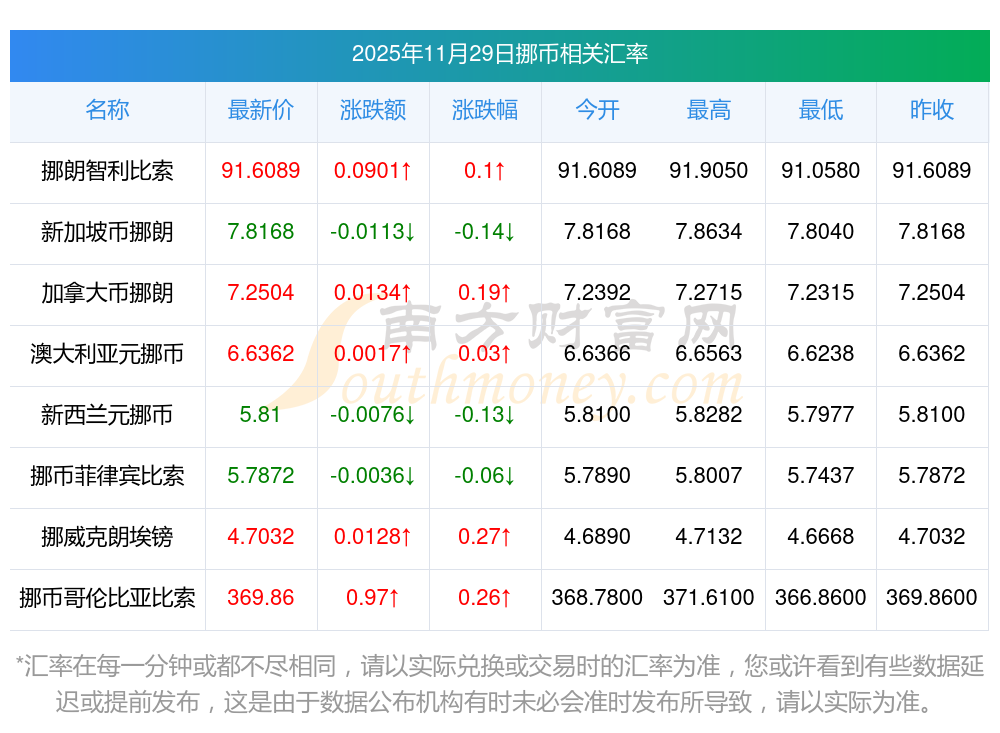 根據(jù)2025年11月29日匯率計(jì)算,NOK兌換BRL匯率最新價(jià)0.526800: