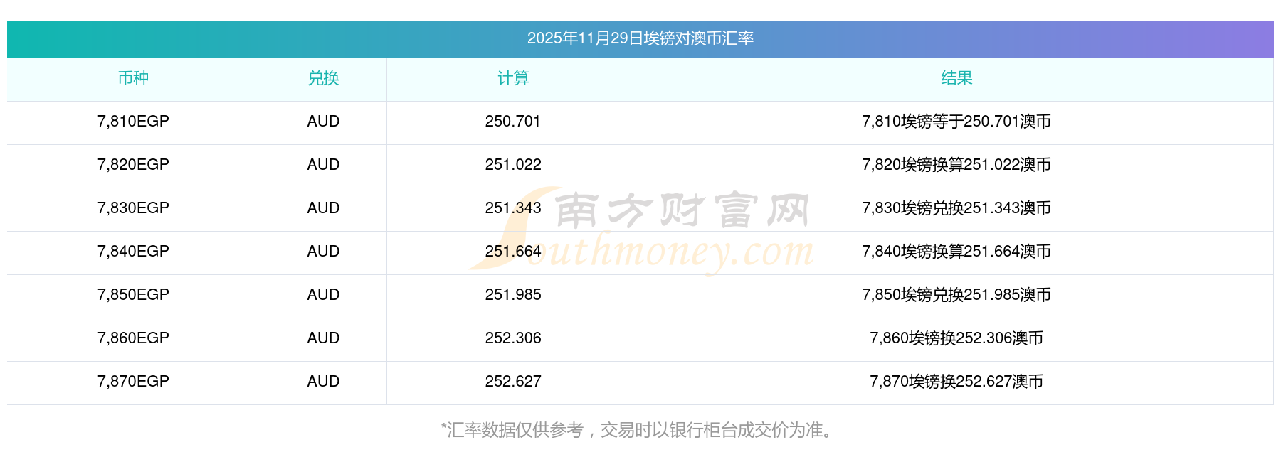 今天匯率計(jì)算:56埃鎊等于多少澳幣的?(2025年11月29日)