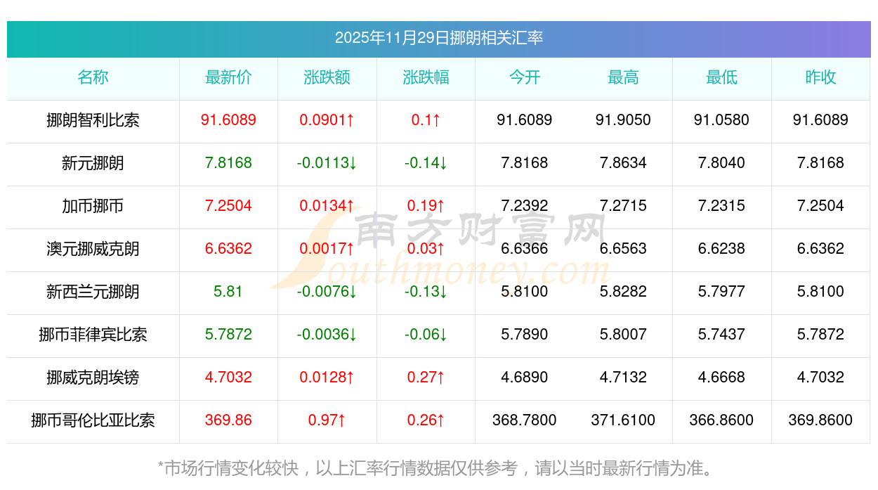 2025年11月29日挪朗相關(guān)匯率查詢