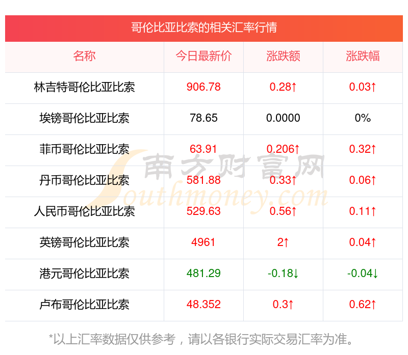 2025年11月29日哥倫比亞比索相關匯率查詢