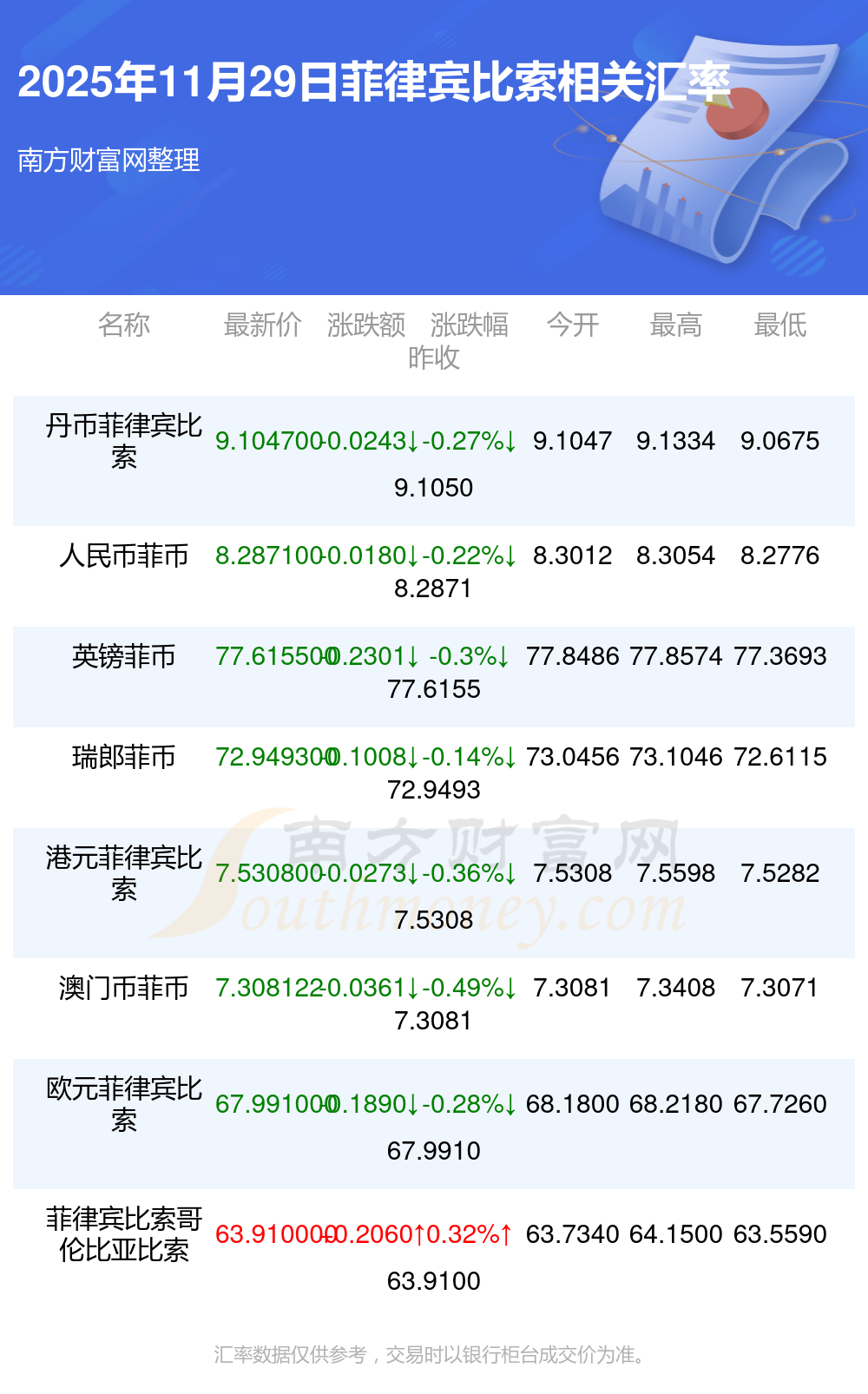 2025年11月29日菲律賓比索相關(guān)匯率查詢