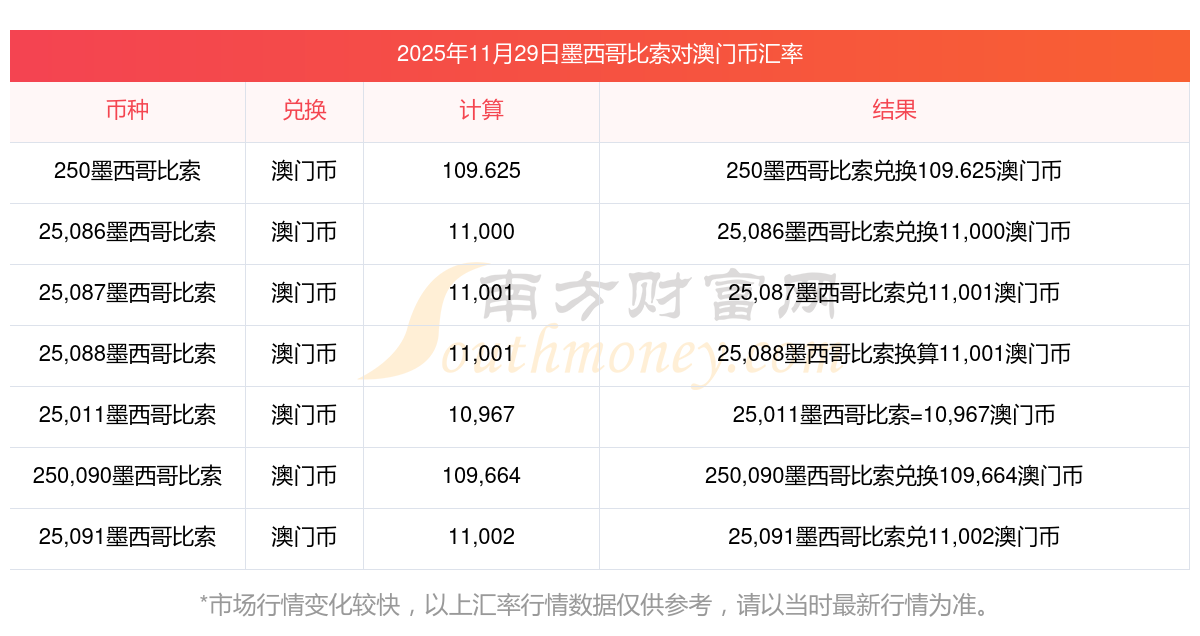 2025年11月29日今天匯率,換算墨西哥比索(MXN)到澳門幣(MOP):