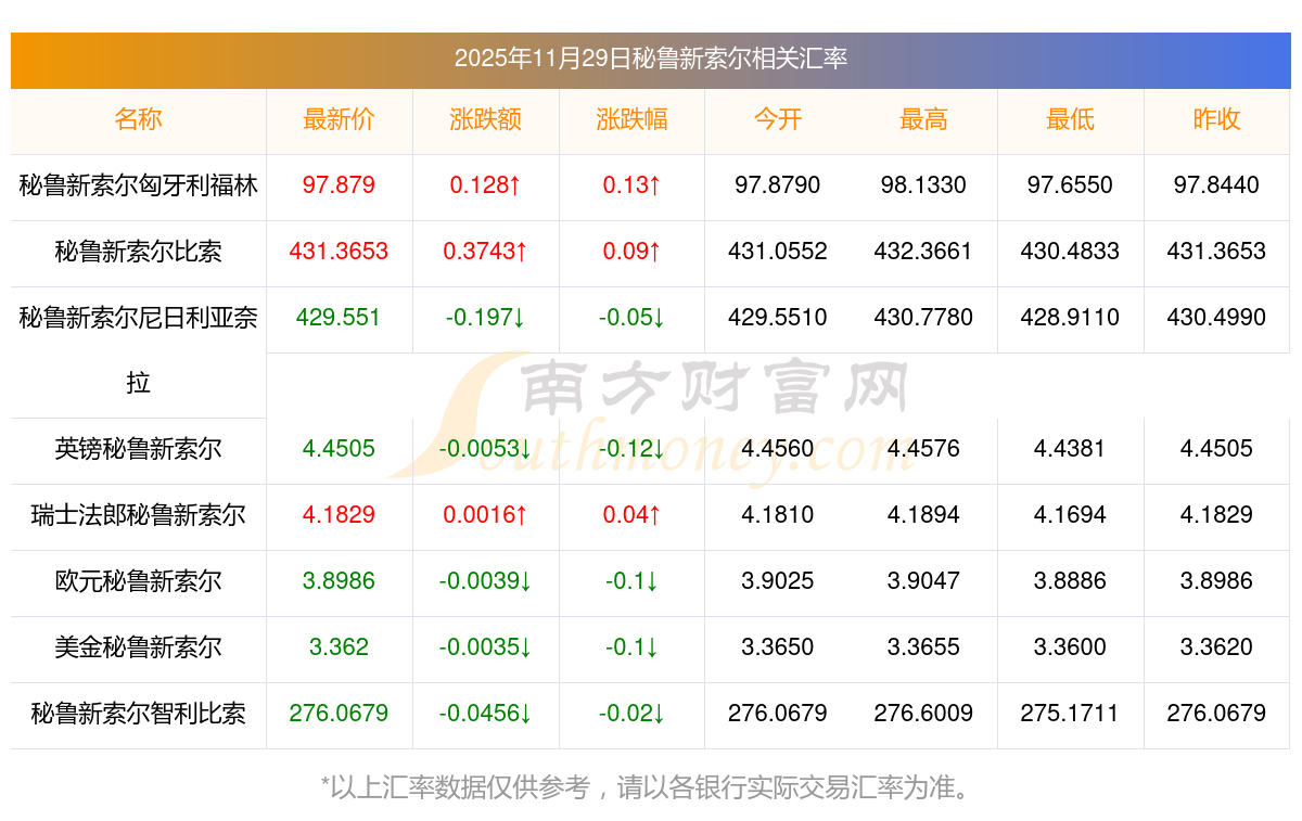 2025年11月29日秘魯新索爾相關(guān)匯率查詢