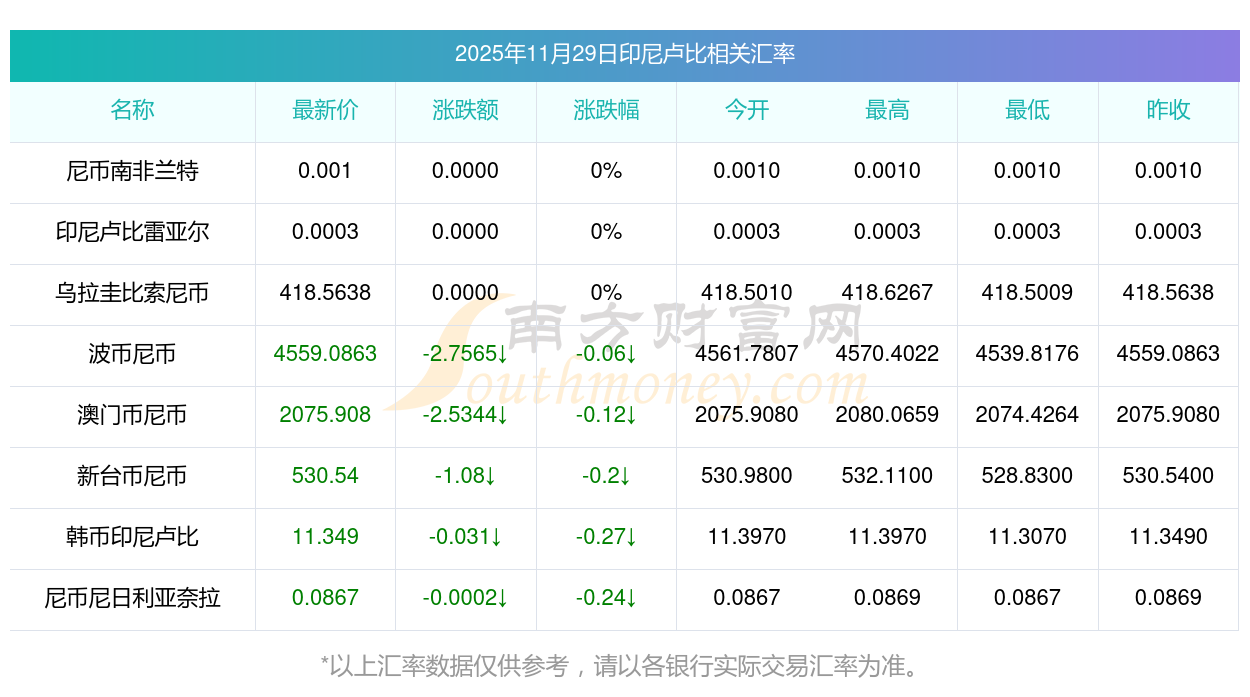2025年11月29日印尼盧比相關(guān)匯率查詢