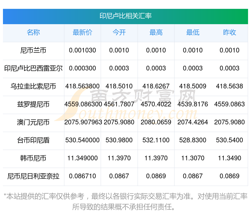 南方財富網為您提供印尼盧比對泰國幣匯率最新價格詳情。