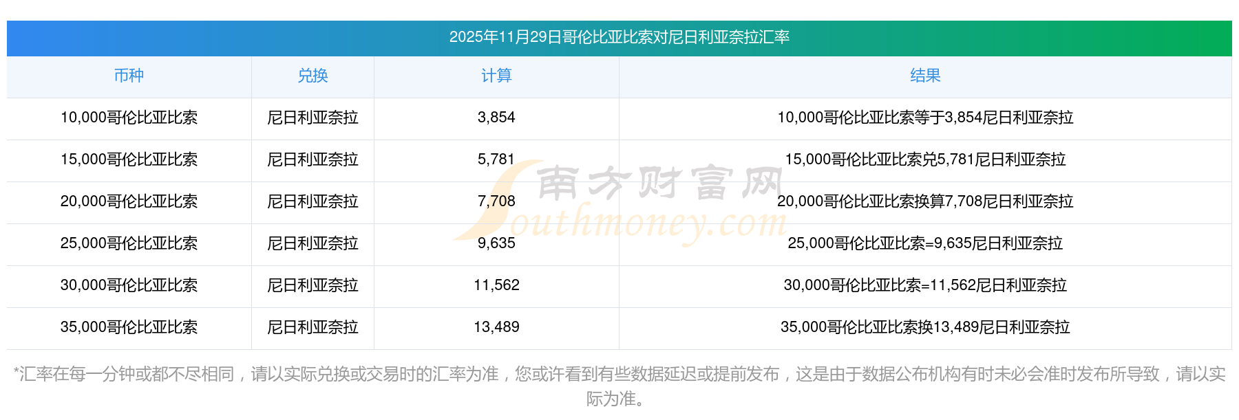 南方財(cái)富網(wǎng)為您提供哥倫比亞比索兌換尼日利亞奈拉匯率最新價(jià)格詳情。