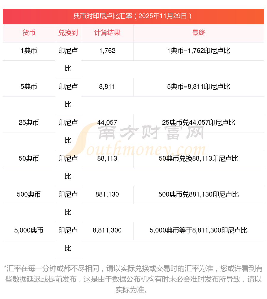今天典幣購匯行情:400典幣對印尼盧比匯率多少?11月29日