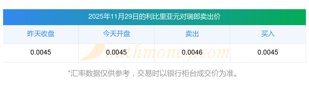 利比里亞元對(duì)瑞郎 今天利比里亞元實(shí)時(shí)匯率查詢11-29