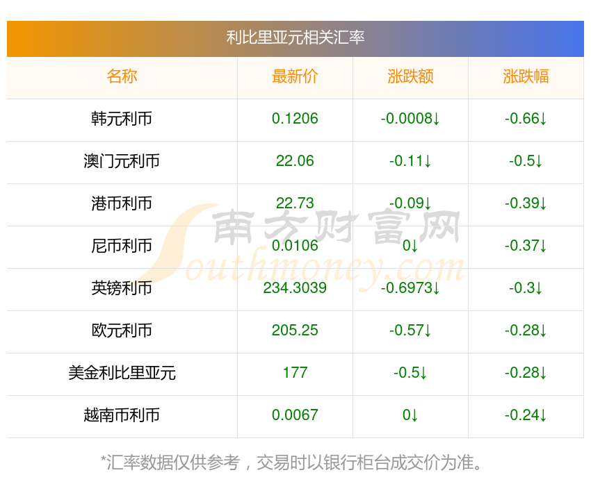 南方財(cái)富網(wǎng)為您提供利比里亞元對(duì)瑞郎最新價(jià)格詳情。