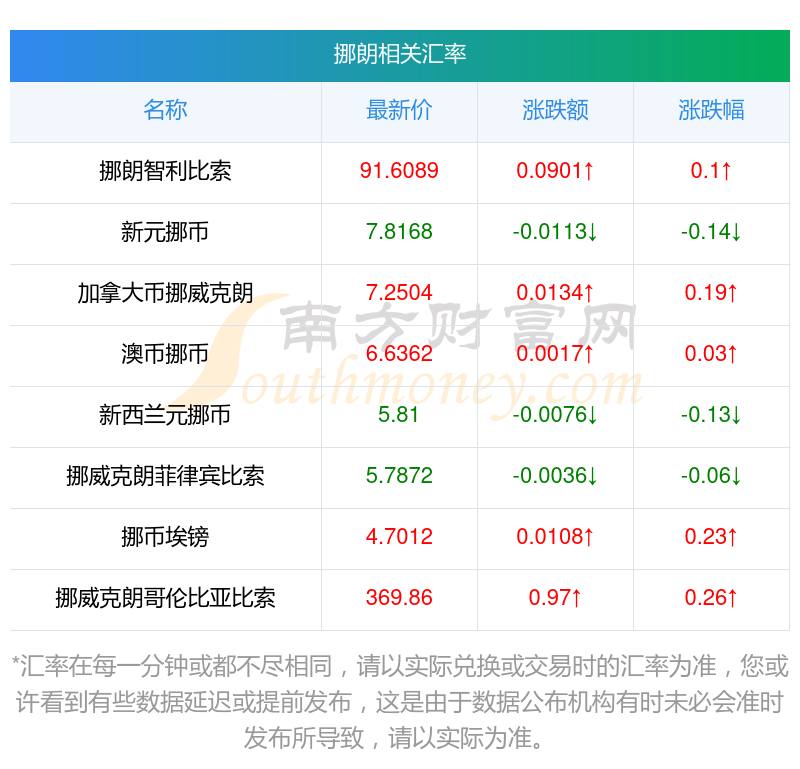 南方財富網(wǎng)為您提供挪朗對智利比索匯率最新價格詳情。