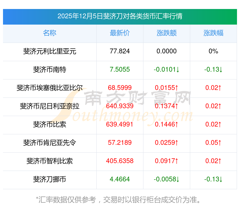 2025年12月5日斐濟刀相關(guān)匯率查詢